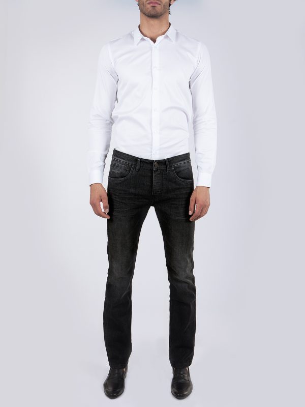 Crafted from premium performance denim, its deep black tone and refined regular fit make it the perfect balance between timeless elegance and contemporary style.
